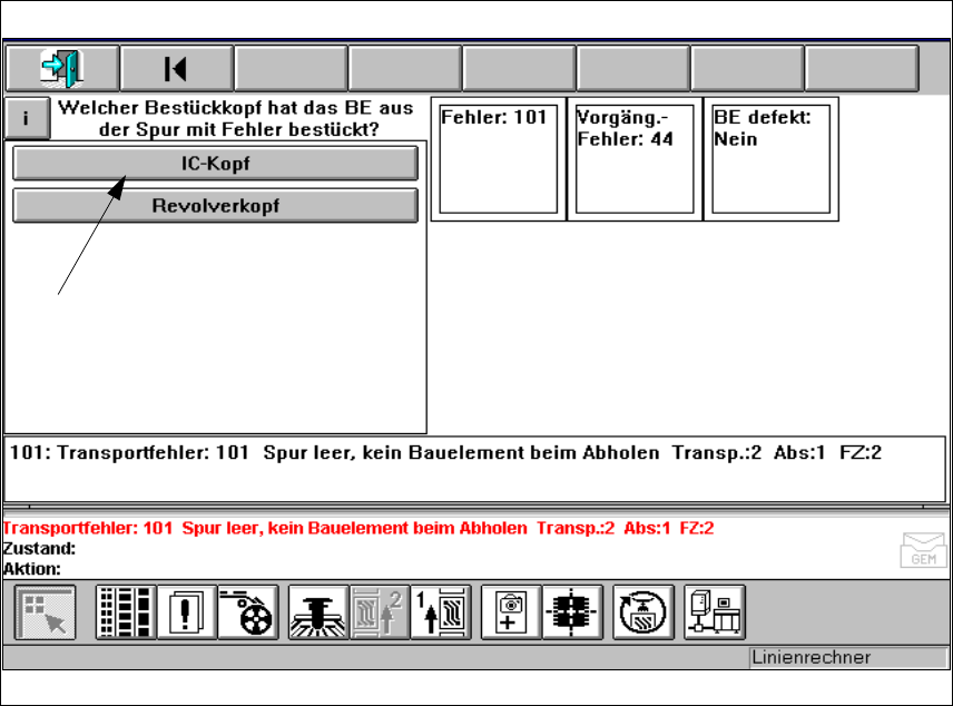 1 Aktionsfenster 2 Anzeigefenster Fehlermeldung