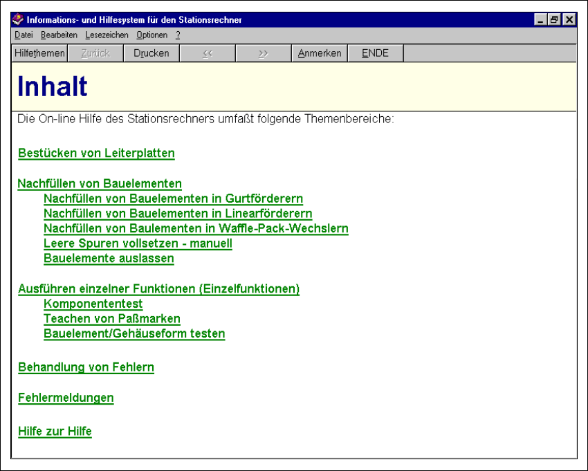 Das Hauptfenster des Hilfesystems für den Stationsrechner wird geöffnet (siehe Abb. 9.1 - 1).