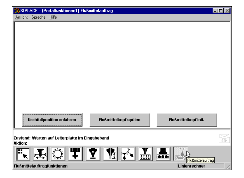 (1) Schaltflächen für Einzelunktionen Flussmittelauftrag (Flux)