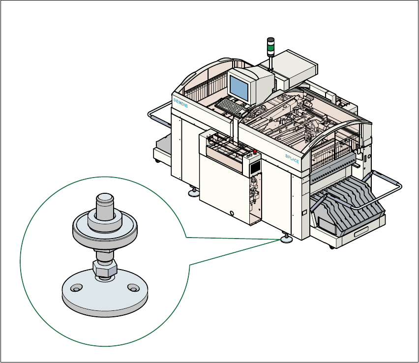 In erdbebengefährdeten Gebieten ist es notwendig, den Bestückautomaten gegen Verrutschen zu
