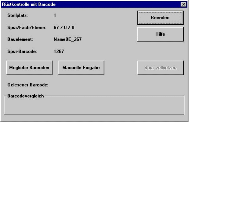 Abb. 4.1 - 2Fenster "Rüstkontrolle mit Barcode"