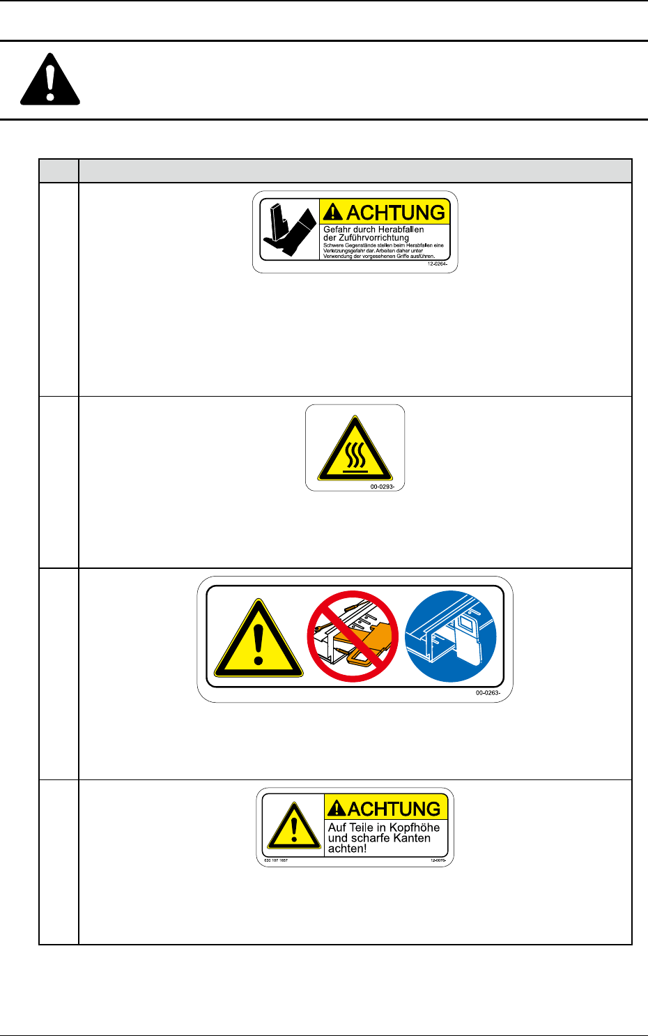 Sicherheitsvorkehrungen Safe-31 DEUKYX-Safety 193-X100 5. Gefahrenaufkleber N r. Gefahrenaufkleber und Beschreibung (17) Beschreibung ● Legen Sie weder Ihre Hand noch schwere Objekte auf den Stützstifttisch, während Sie …