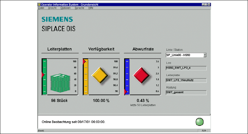 SIPLACE OIS (Operator Information System) erfasst und visualisiert die Betriebsarten der
