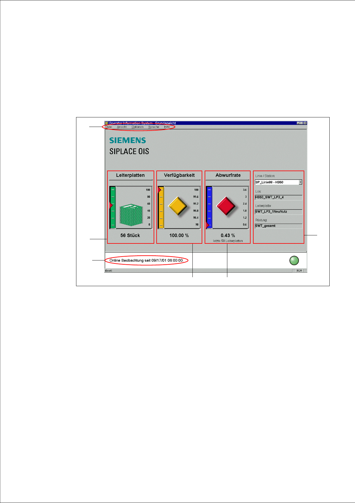 Machen Sie sich in diesem Kapitel mit der Bedienoberfläche von SIPLACE OIS vertraut. Die