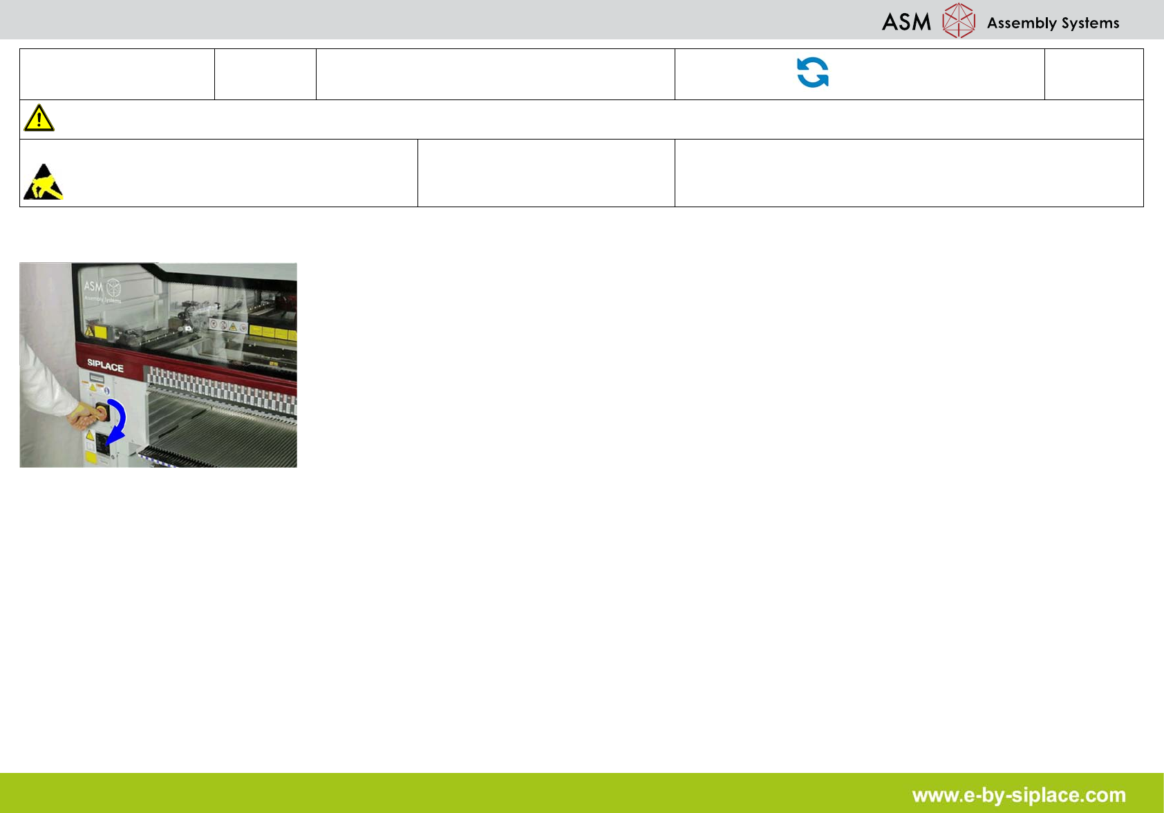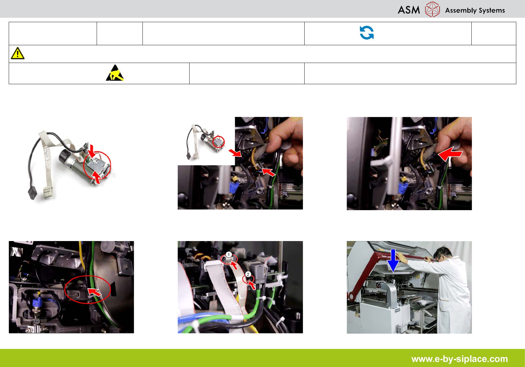 E-by SIPLACE CP12 & CP6 Inserting the Turning Station Part Exchange 2/2 CAUTION! Refer to safety inst ructions in user manual before working on the machine. ESD guidelines are to be followed Tool: PN 00341780S07 Turn…