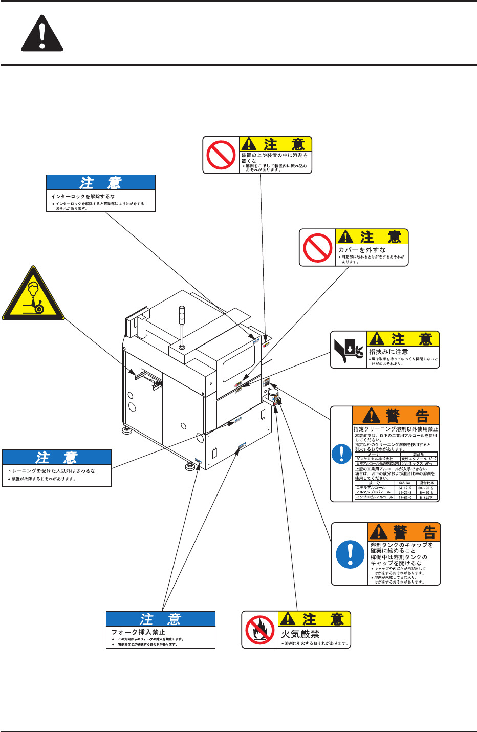 警告ラベルは、危険か所または注意か所に貼付けてあります。