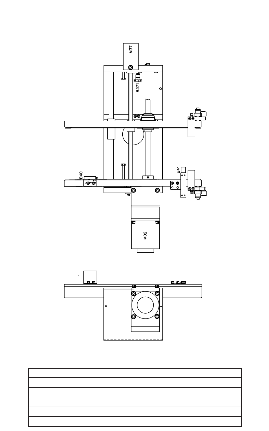 2 - 19 Tg 1301 -ID-MD 供給コンベア部レイアウト 0602 - 001 -(M 831 YH--- 1001 ) 供給コンベア部レイアウト Table 5C10 記 号 名 称 B40 基板移載確認 B41 基板検出 B371 L コンベアレール幅オーバラン(+) M02 L コンベアモータ M37 L コンベア幅パルスモータ