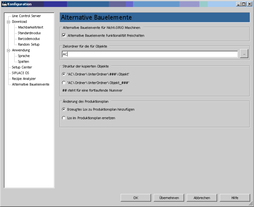 ► Markieren Sie die Check-Box Alternative Bauelemente Funktionalität freischalten, um die