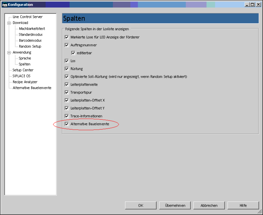 ► Markieren Sie die Check-Box Alternative Bauelemente, damit eine entsprechende Spalte in