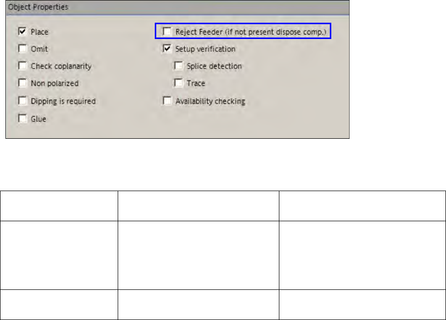 option has to be enabled for the component. If no reject conveyor is present, the component will be