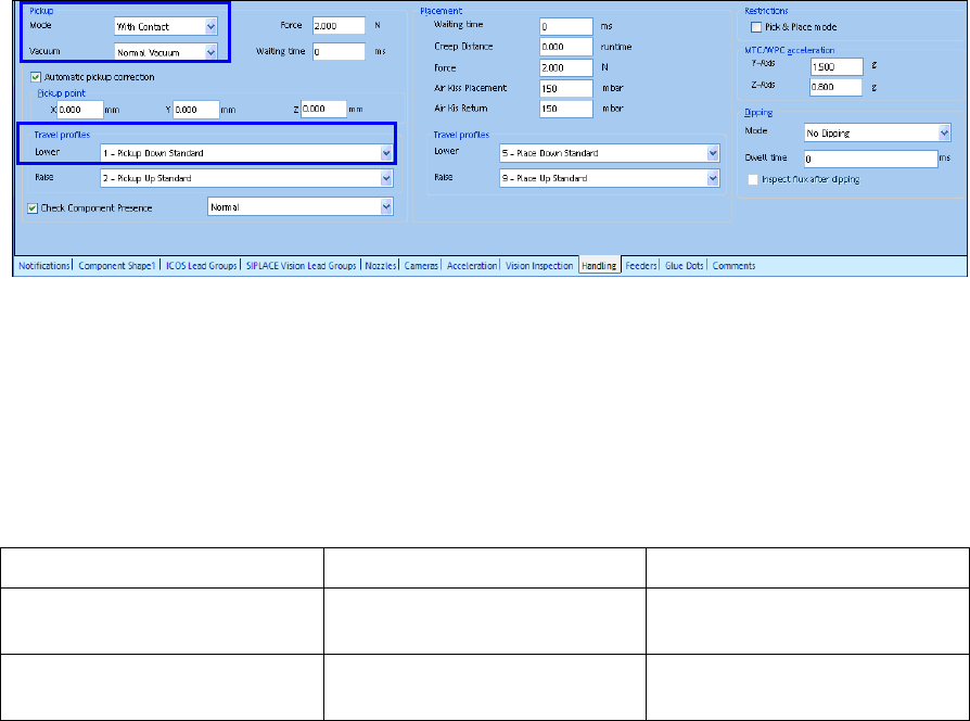 If the pick-up mode is changed to With Contact, SIPLACE Pro Desk automatically sets Normal