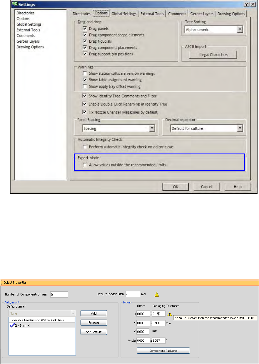 SIPLAC E Pro V10. 1 SP1 / Softwar e Version Desc ripti on Ausgabe 02/2013 Edit ion 24 5.7.7 Lower Limit for Component Shape Dimensions A lower t oleranc e lim it has been introduc ed f or the co m ponent shape d im ensio…