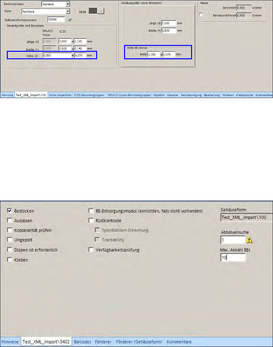 Abbildung 4-4: Höhenangaben im Gehäuseform-Editor