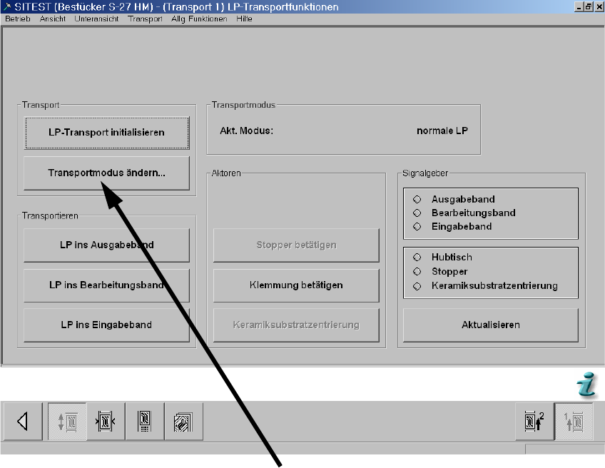 : Wählen Sie "LP-Transportfunktionen".