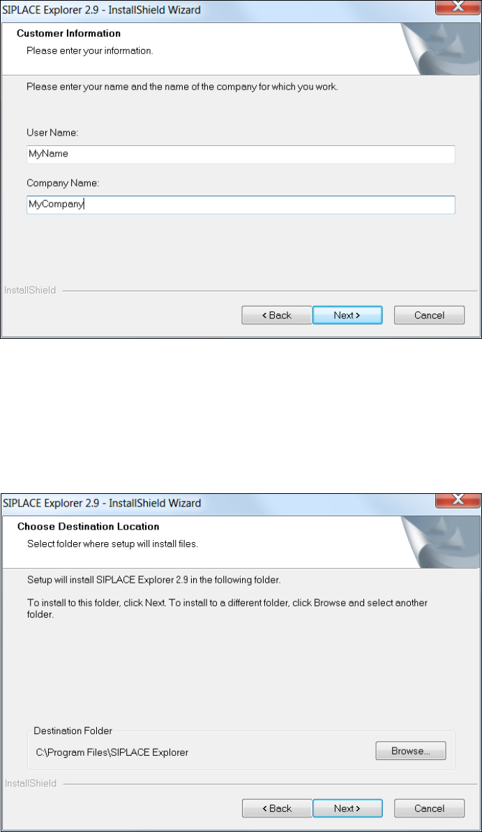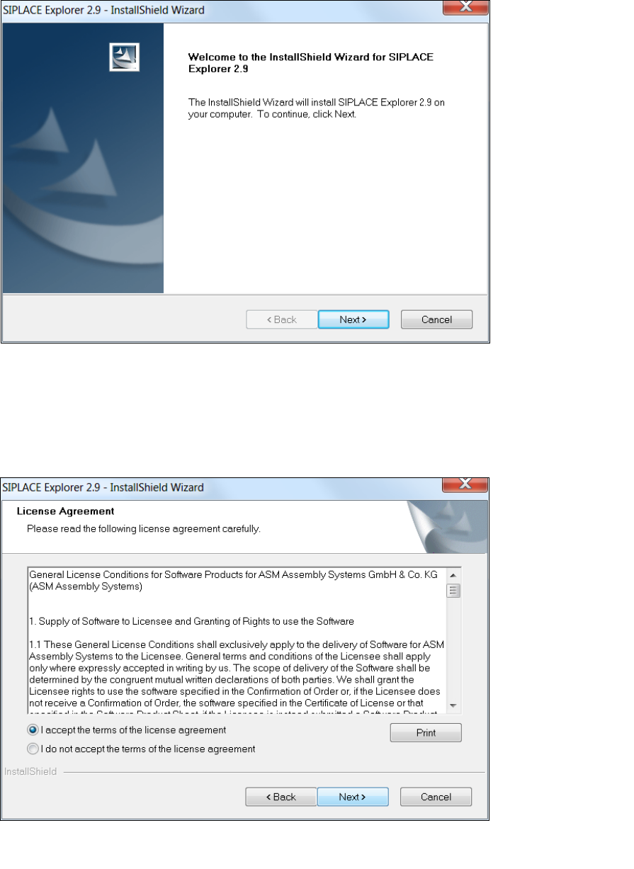 3.3 Installation of SIPLACE Explorer 2.9 Edition 06/2011 EN
