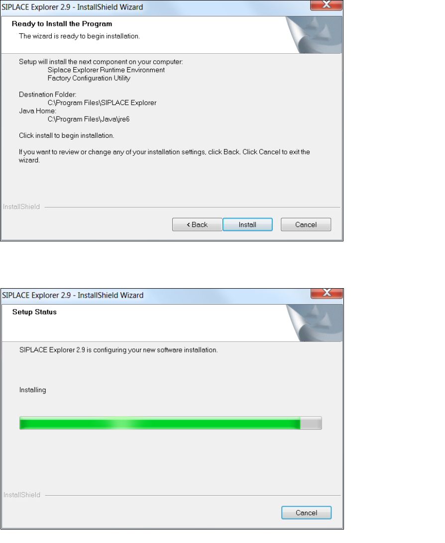 Click on the Install button, to begin the actual installation of SIPLACE Explorer V2.9.