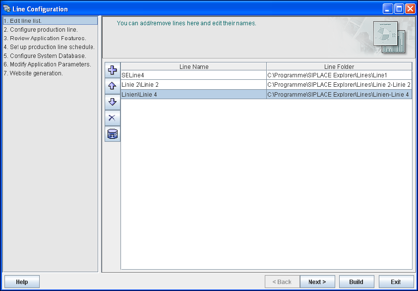 The added production lines will be shown in the Line Configuration - Edit Line List dialog