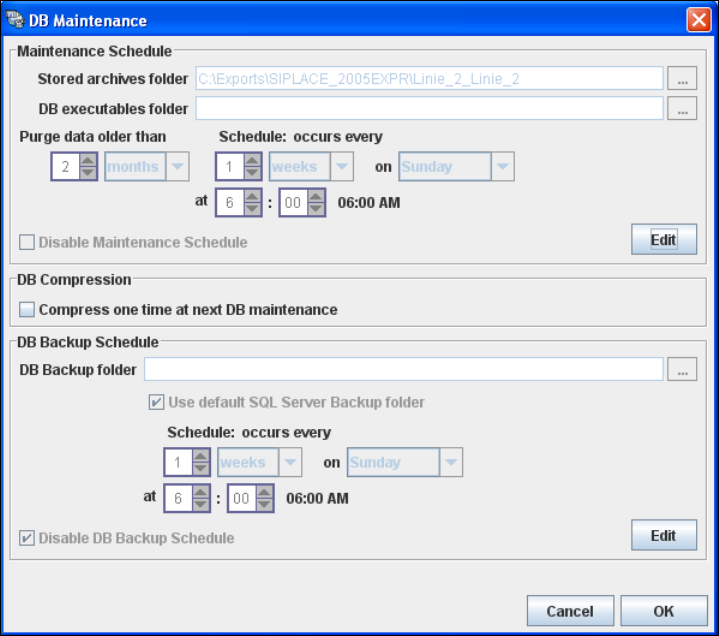 All input fields will be disabled. To start or edit a DB maintenance schedule, you must have