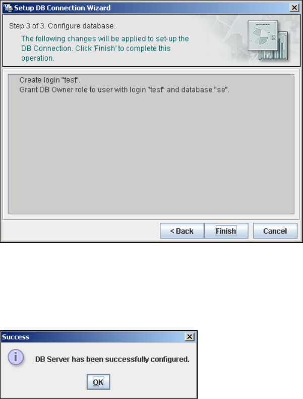 Click on Finish and the wizard will carry out the required configuration. The DB settings are