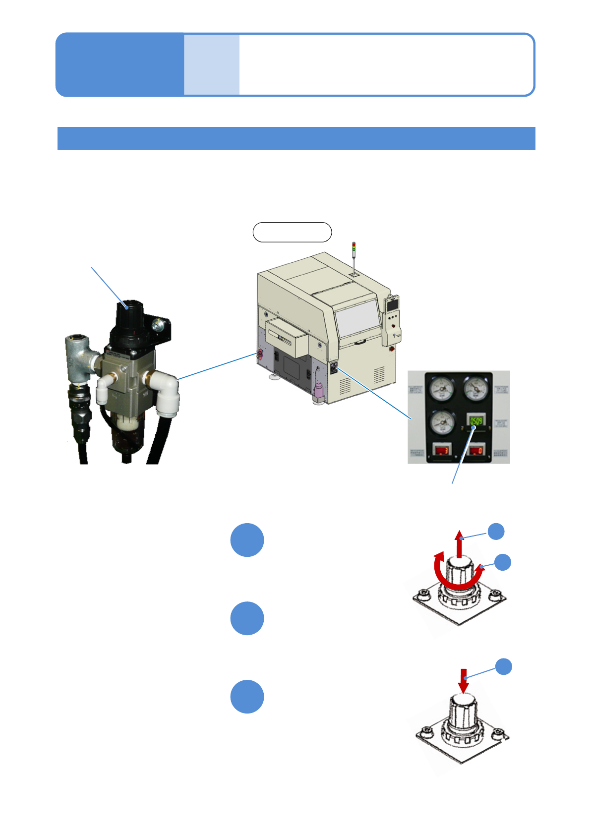 不能供给正常的运转气压(0.5~0.55MPa)时,请按照下图步骤调整到规定的气压。