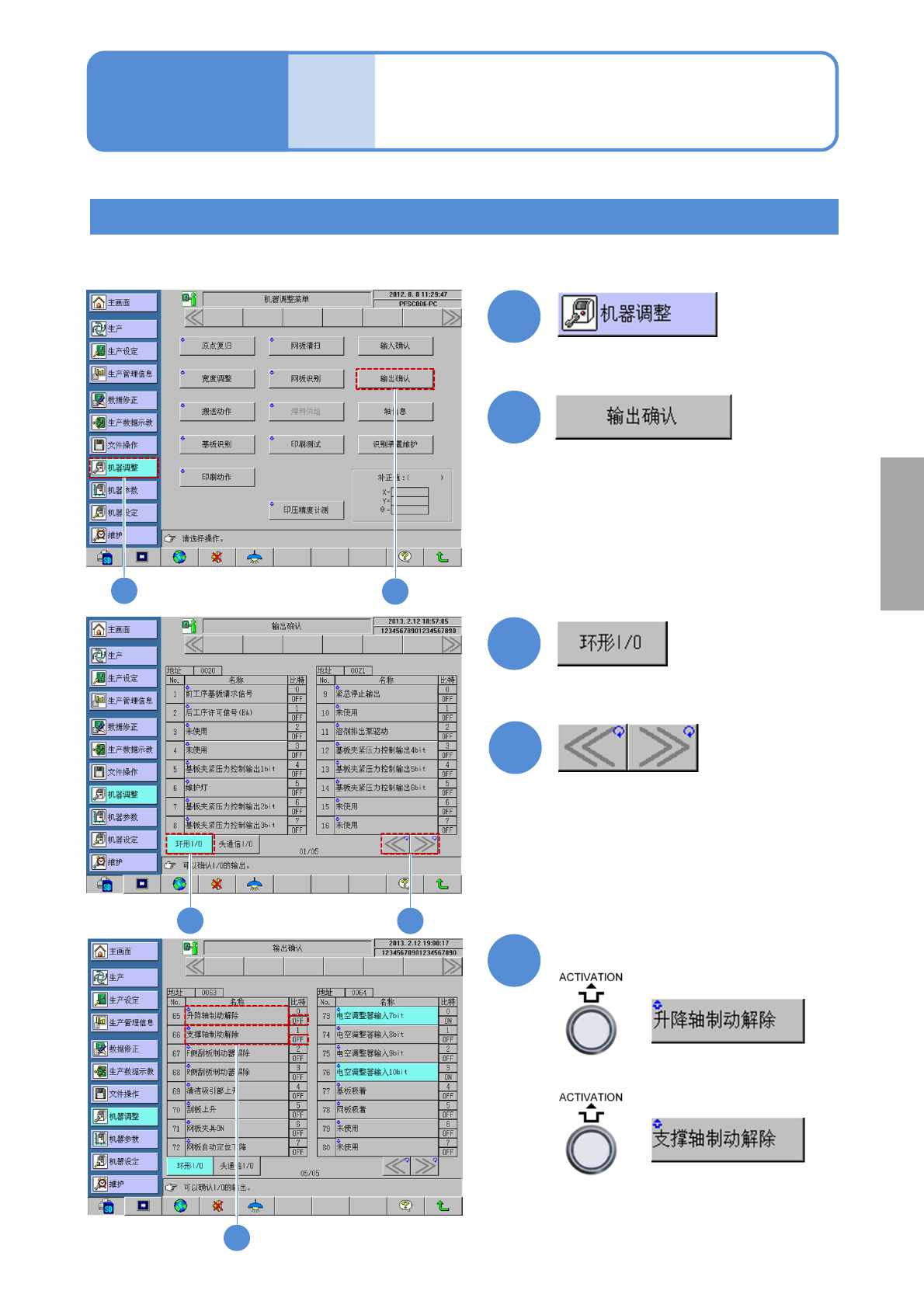 为了进行维修保养作业,需要解除升降机轴和支撑轴的制动器后进行。