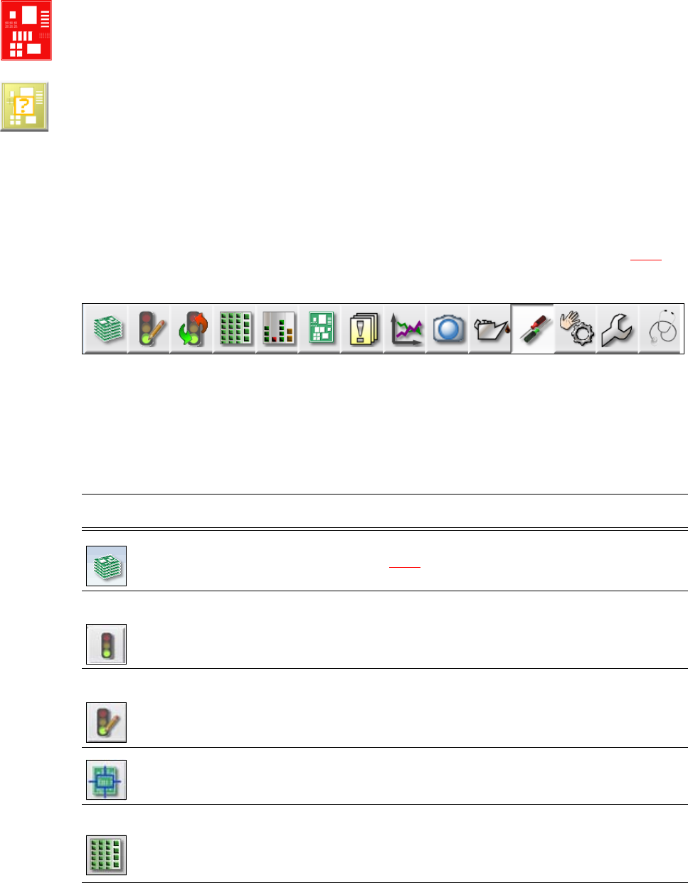《用户手册》 E by SIPLACE 5 贴片机上的作业 使用软件版本 SC 712.1 或更新 2019 年 5 月版 5.6 用户界面 207 印制电路板处理已停止 如果处理已停止,PCB 图标 将显示为红色。 检查印制电路板 如果印制电路板位于输出传送导 轨中, 而且需要操作员检查印制电路 板的状态, 则 PCB 图标将显 示为黄色。 5.6.3 工具栏 工具栏中包含用于控制贴片机软 件主要功能的按钮。 通过这些按钮,您就可以将…