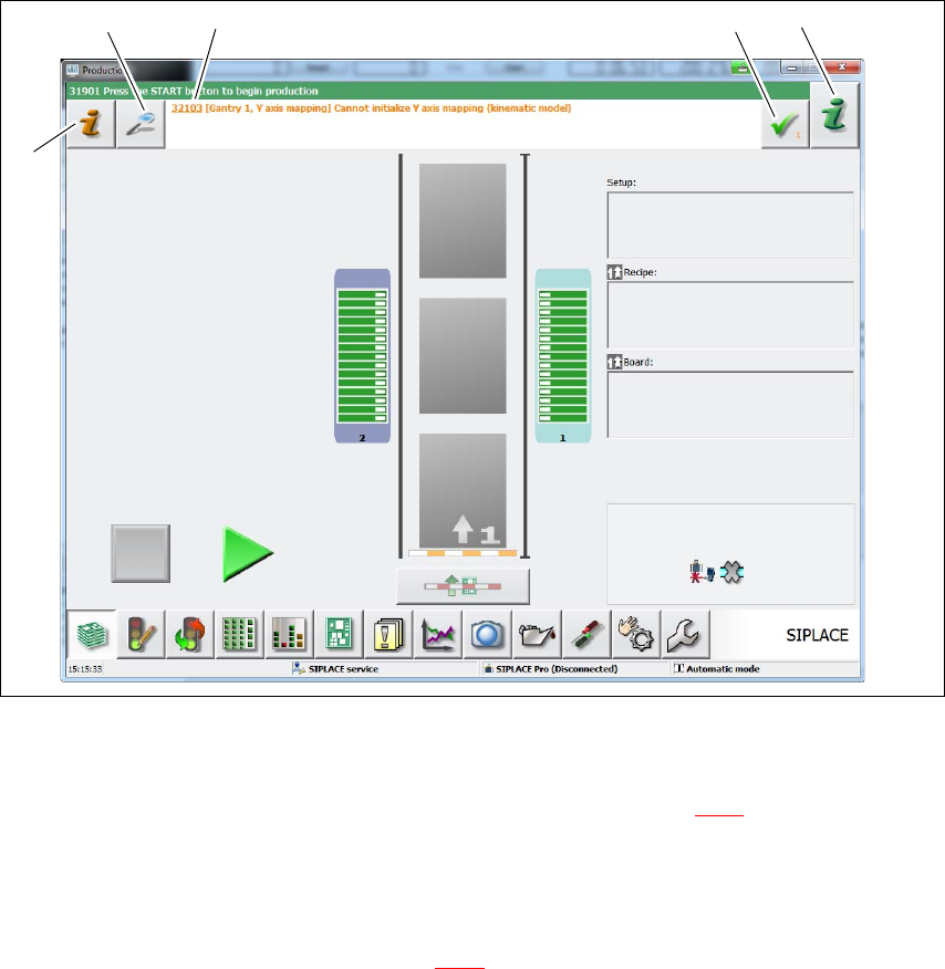如果贴片机工作期间出现警报,那么用户界面状态区域的警报消息将显示为红色。警报信息图标