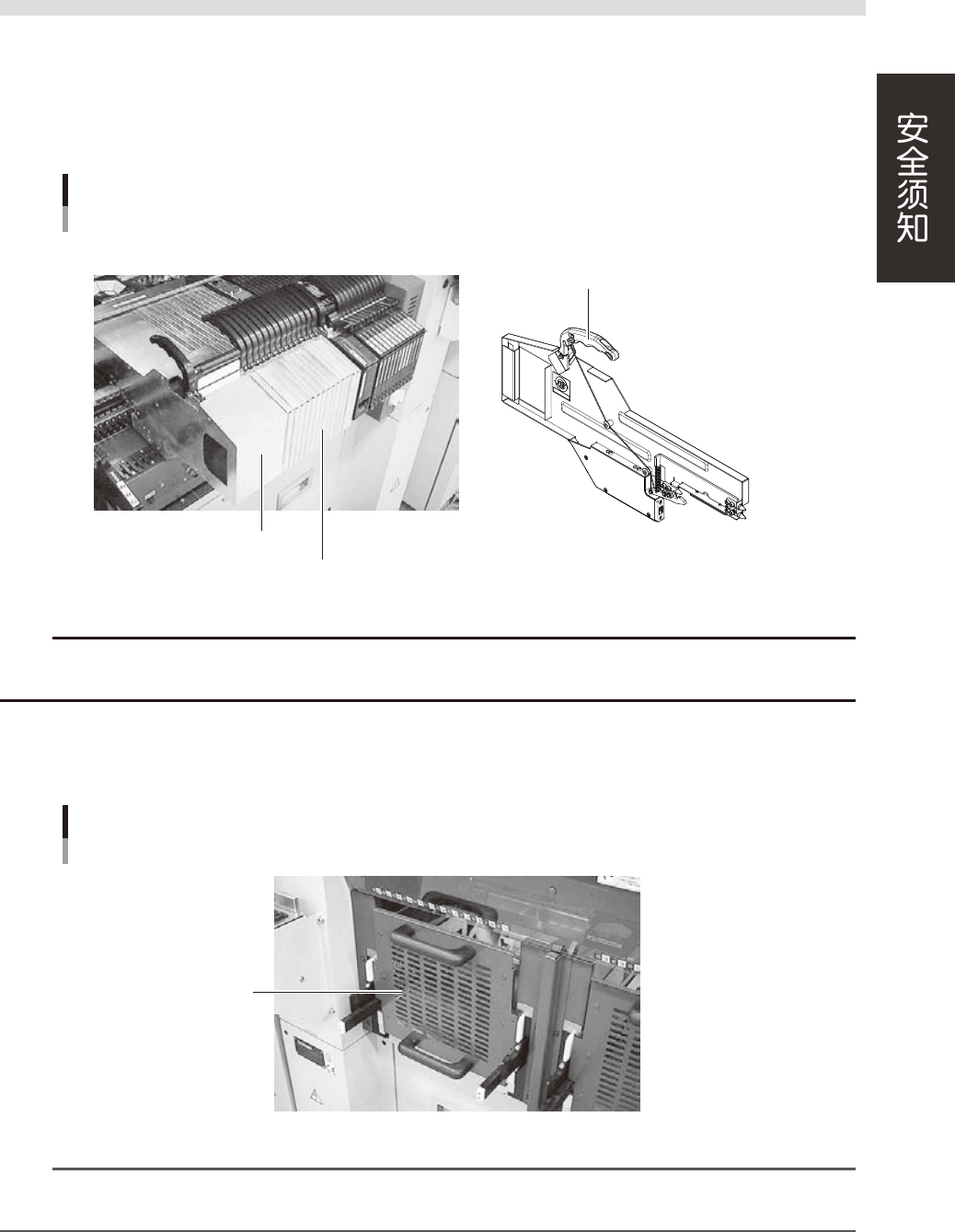 实际使用设备时,根据客户的设备与使用条件,手可能有误入可动部的危险。为避免手误入可动部,对开口部及