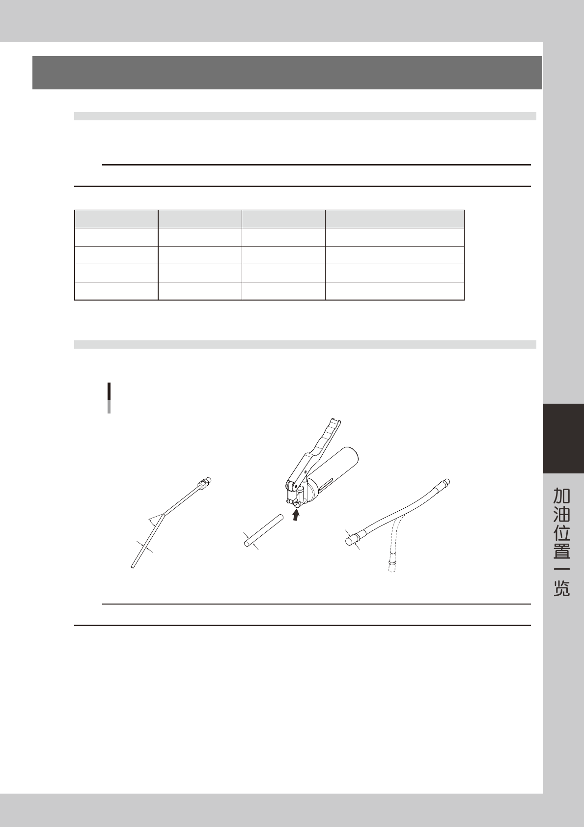 加润滑油时使用润滑油枪。请根据加油位置,从 3 种枪嘴中选择适用的枪嘴。