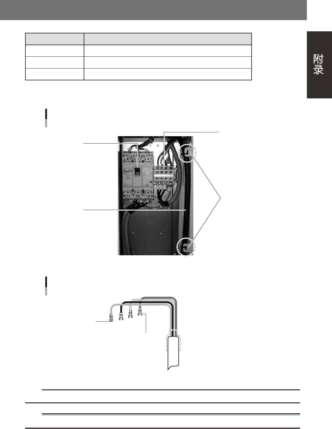 电源连接部在检查机正面下方盖板内。如下图所示,将电源线连接在电源端子台 L1、L2、L3 PE ( 接地 ) 上。