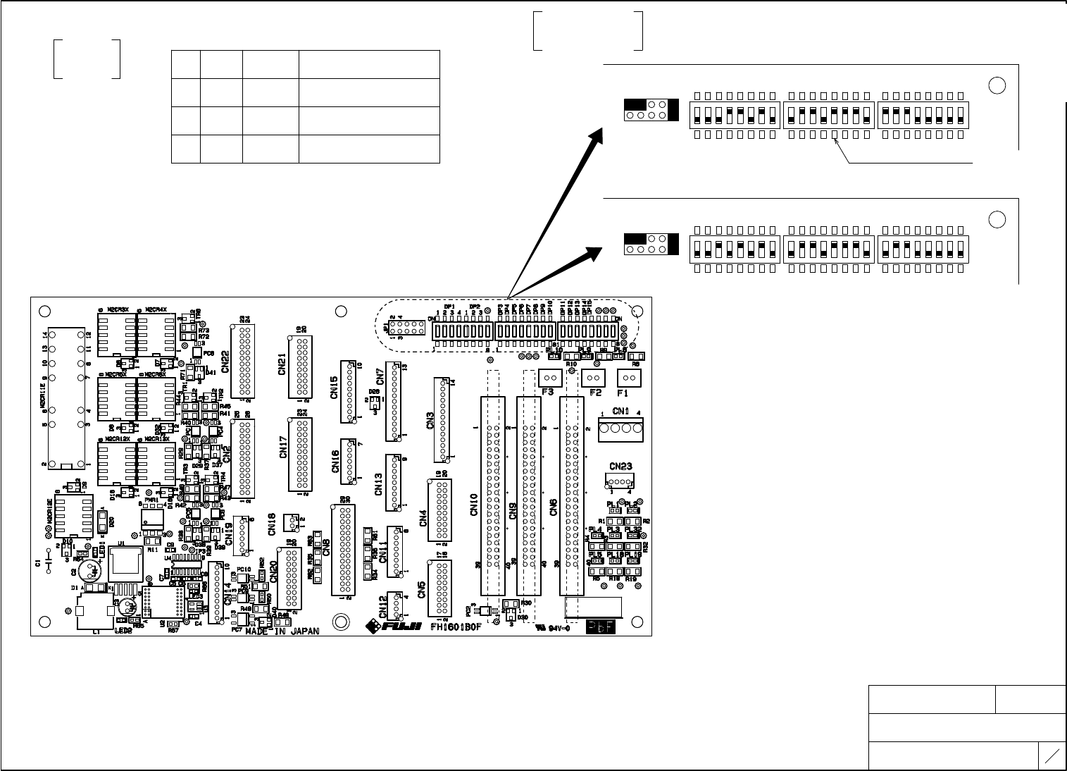 NAME TYPE ジャンパ設定表 JUMPER SETTINGS NFV T I T L E リモートI/O基板 REMOTE I/O BOARD DRAWING No. 1 2 FUJI SECRET 2R GT BC 008 60 3 デバイスベー ス下にあります。 It is und er a device base. F H 1 5 7 8 表 側 F H 1 5 7 8 F R O N T S I D E 型式 定格 メーカ…