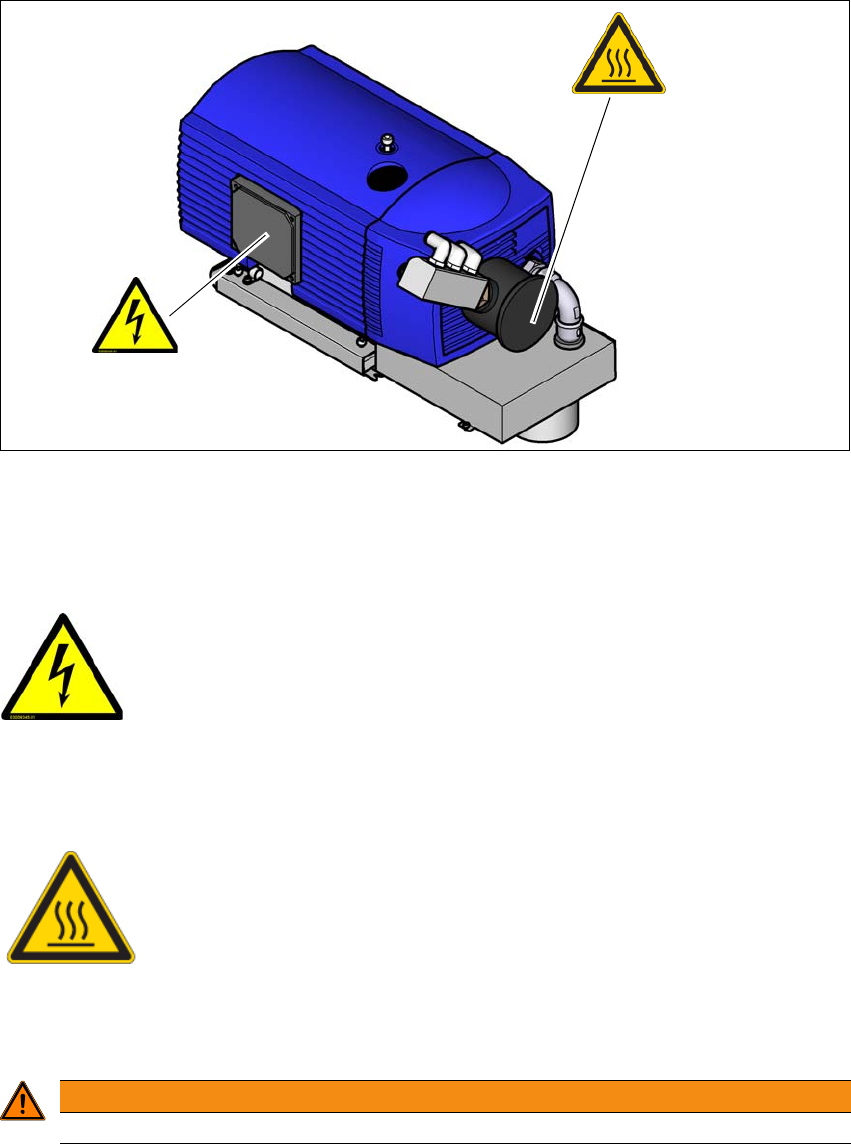 Hot surface label in fig. 2.2 - 12, page 61, item no. 03031926-01 (1 label on the vacuum pump)
