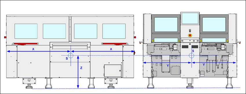 Fig. 3.3 - 6 Placement machine center of gravity in millimeters