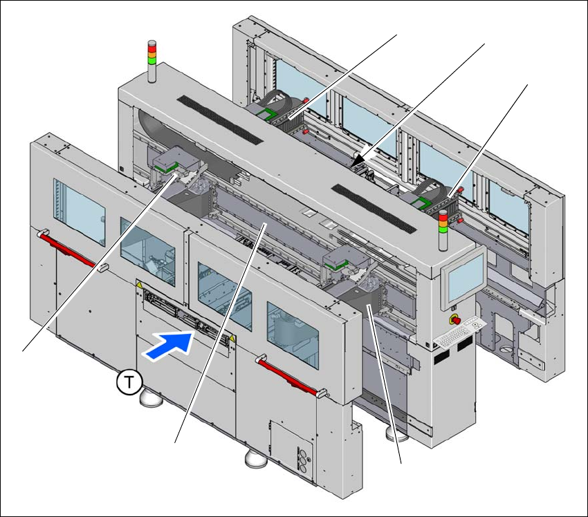 (T) Direction of PCB conveyor