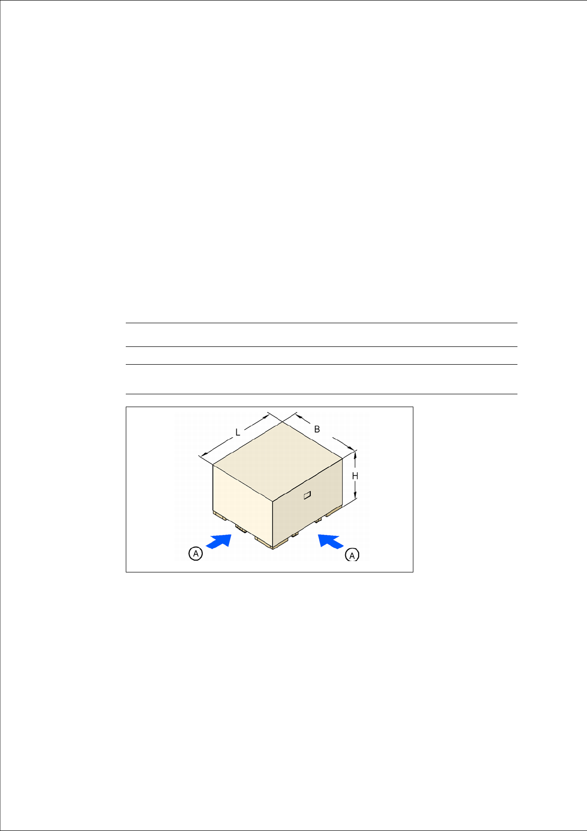 The dimensions of the pallets and wooden crates are listed in the following table: