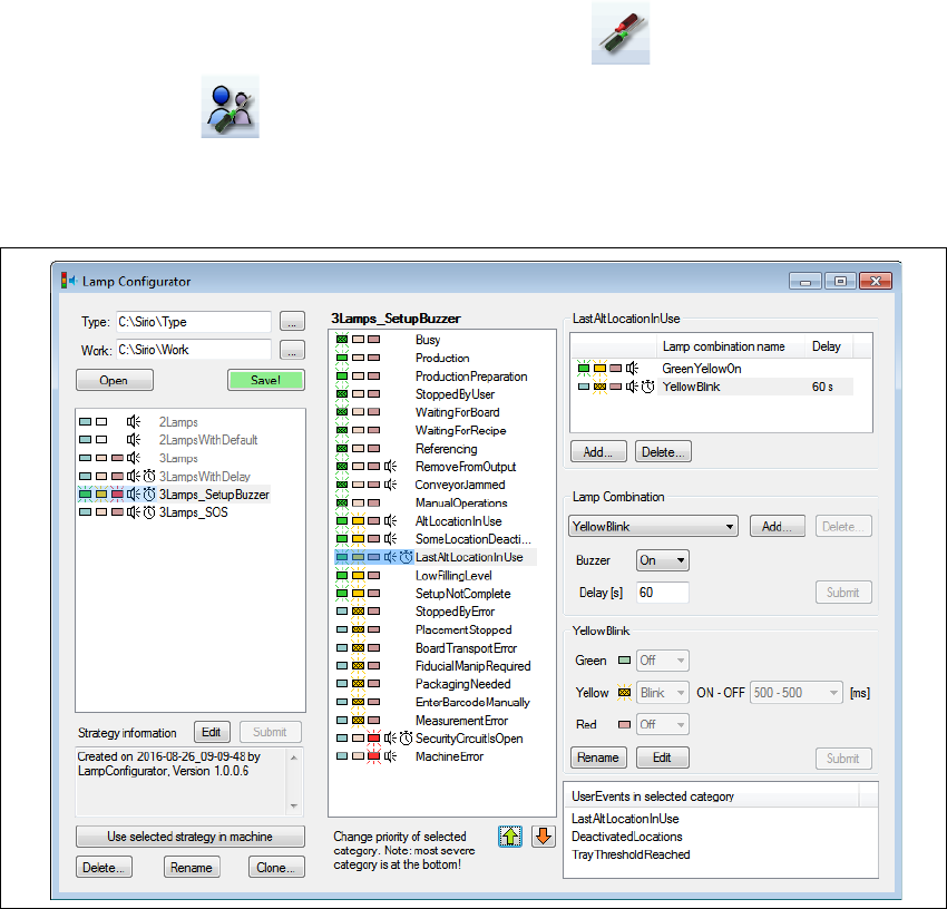 Instruction manual SIPLACE CA4 V 2 5 Tasks at the placement machi ne From software version 713.0 Ed ition 12/2019 5.7 Indicator lamps w ith horn 219 5.7.2 Customized configuration of indicator lamp Click on " Sett…