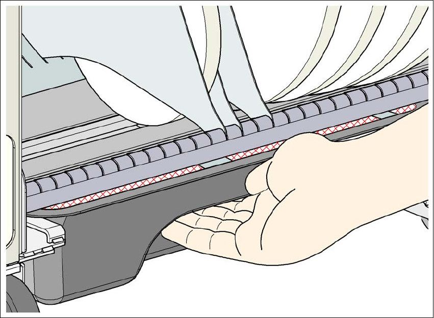To avoid this risk, take hold of the underside of the grab recess on the waste tape container
