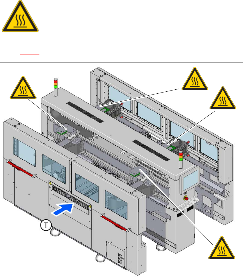 Fig. 2.2 - 15 Warning signs on the wafer lane conveyor with temperature-controlled vacuum tooling DM 300
