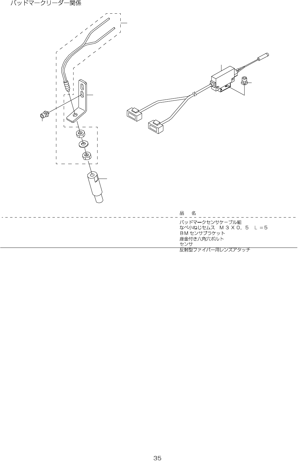 - - 20. B AD M ARK READE R CO MPO N E TS 1 5 6 3 4 2 REF.NO NOT E PART NO D E S C R I P T I O N Qty 1 E9574-725-0A0 BAD M ARK SENSOR CABL E ASM. 1 2 SL-4030581-SC CO MBI N AT IO N SCREW M3 X 5 2 3 E3821-802-000 BM SENS…