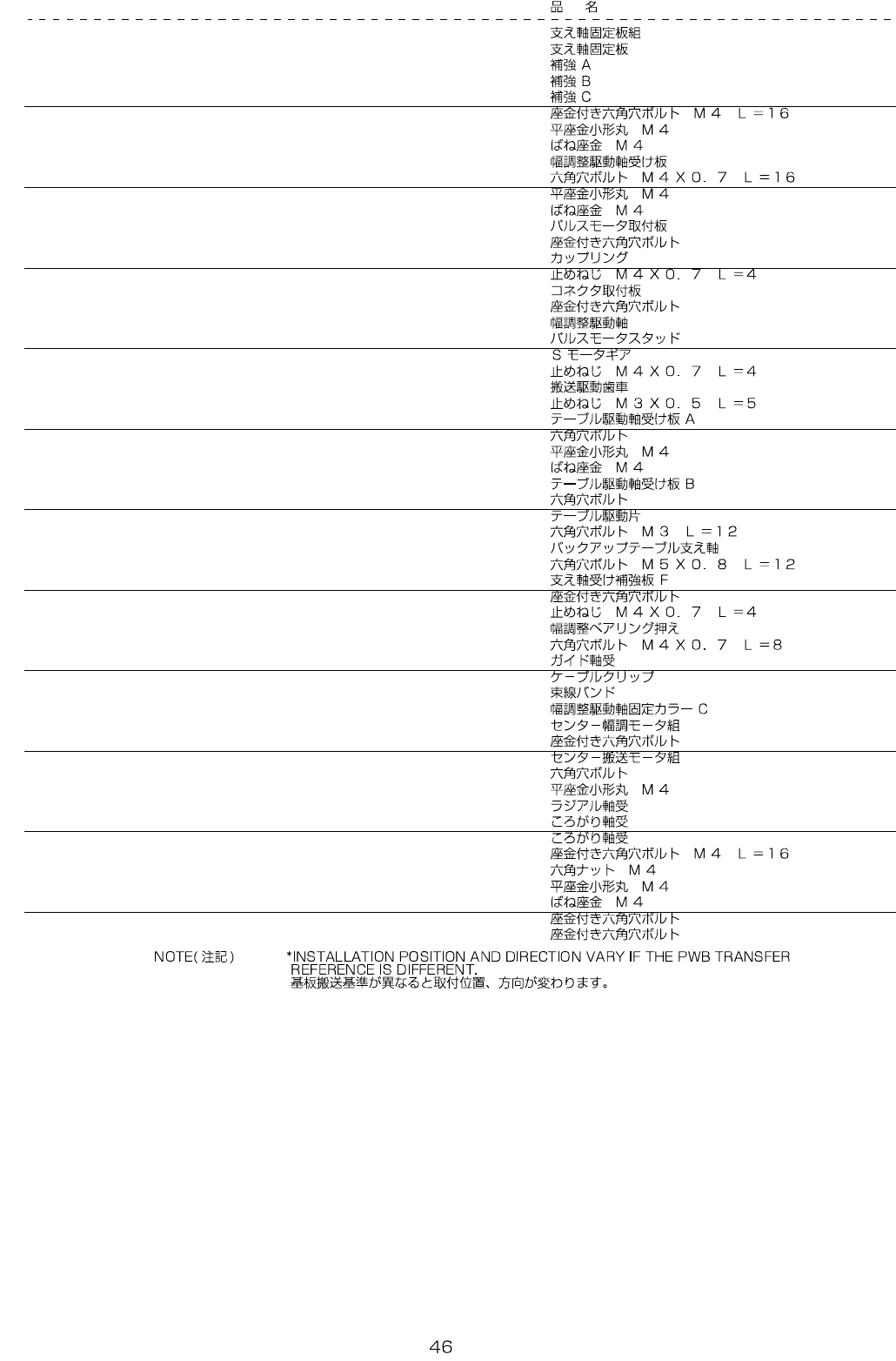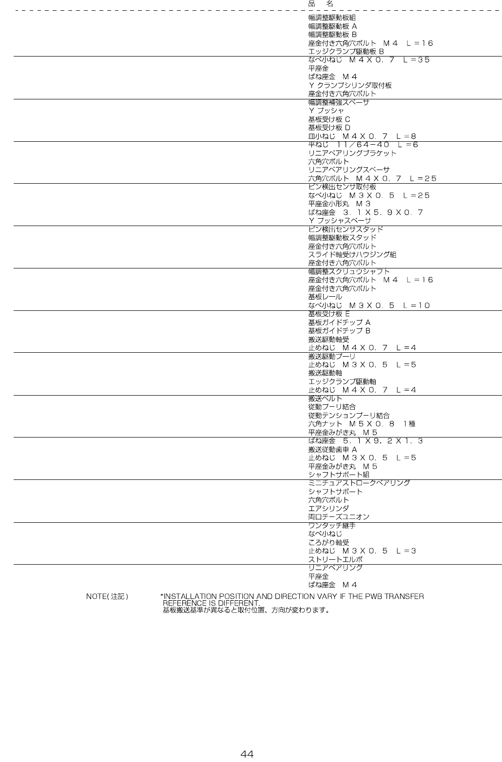 REF.NO NOTE PART NO D E S C R I P T I O N Qty