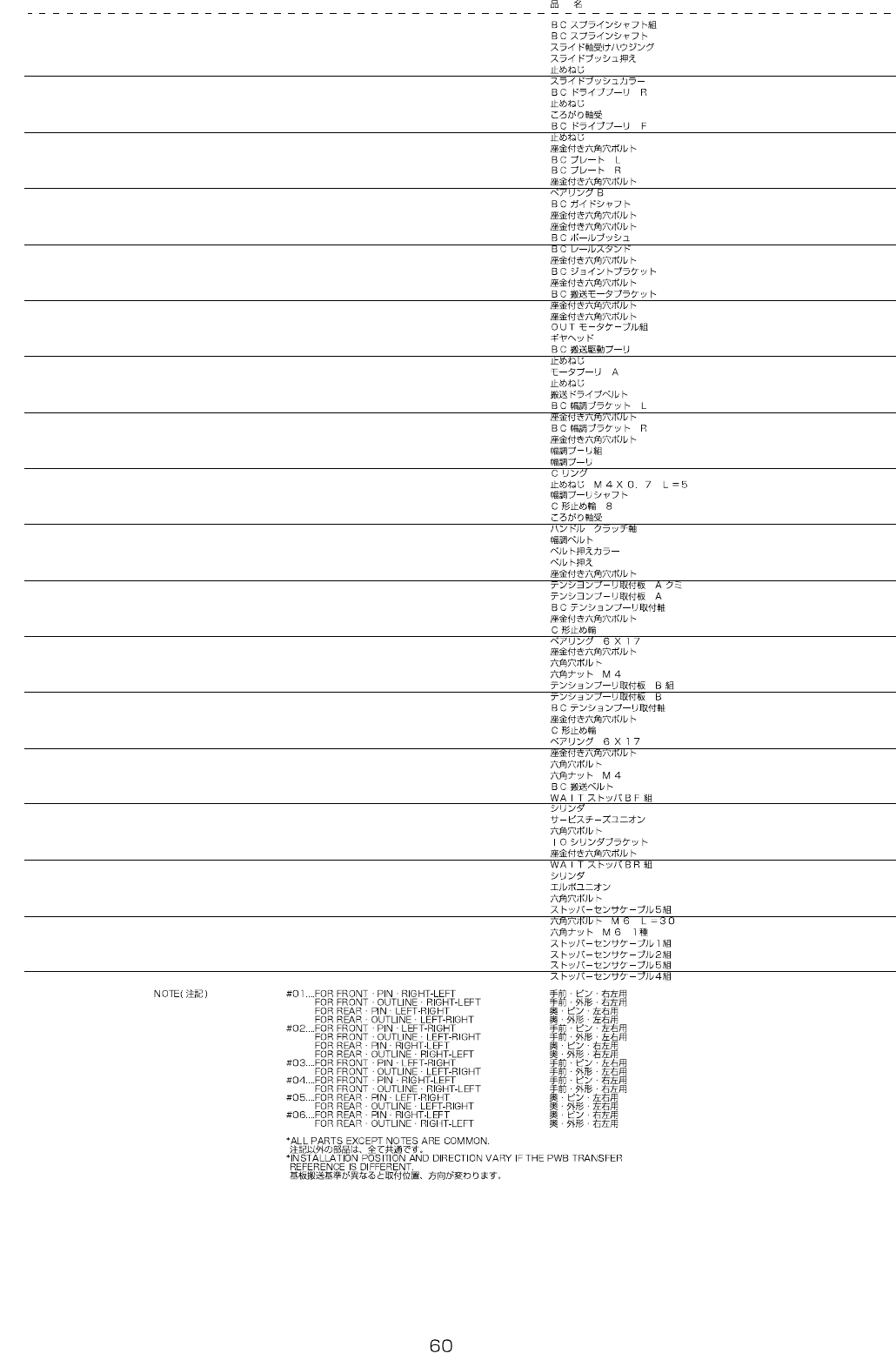 REF.NO NOTE PART NO D E S C R I P T I O N Qty
