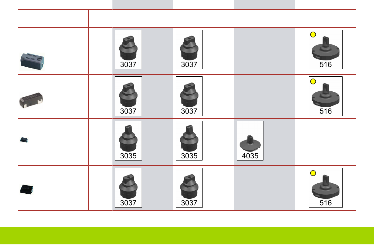2-polige Bauelemente CP6 CP12 CP14 PP / TH Gehäuseform [LxBxH (mm)] GF- Datei Pipettentypen ECS L14,0 B6,25 [14,0x6,25x7,0] 360 Crystal SX 5020 [13,0x4,9x4,9] 381 Diode DO 214 AC [5,0x2,6x2,29] 420 Diode DO 214 AA [5,4x3…