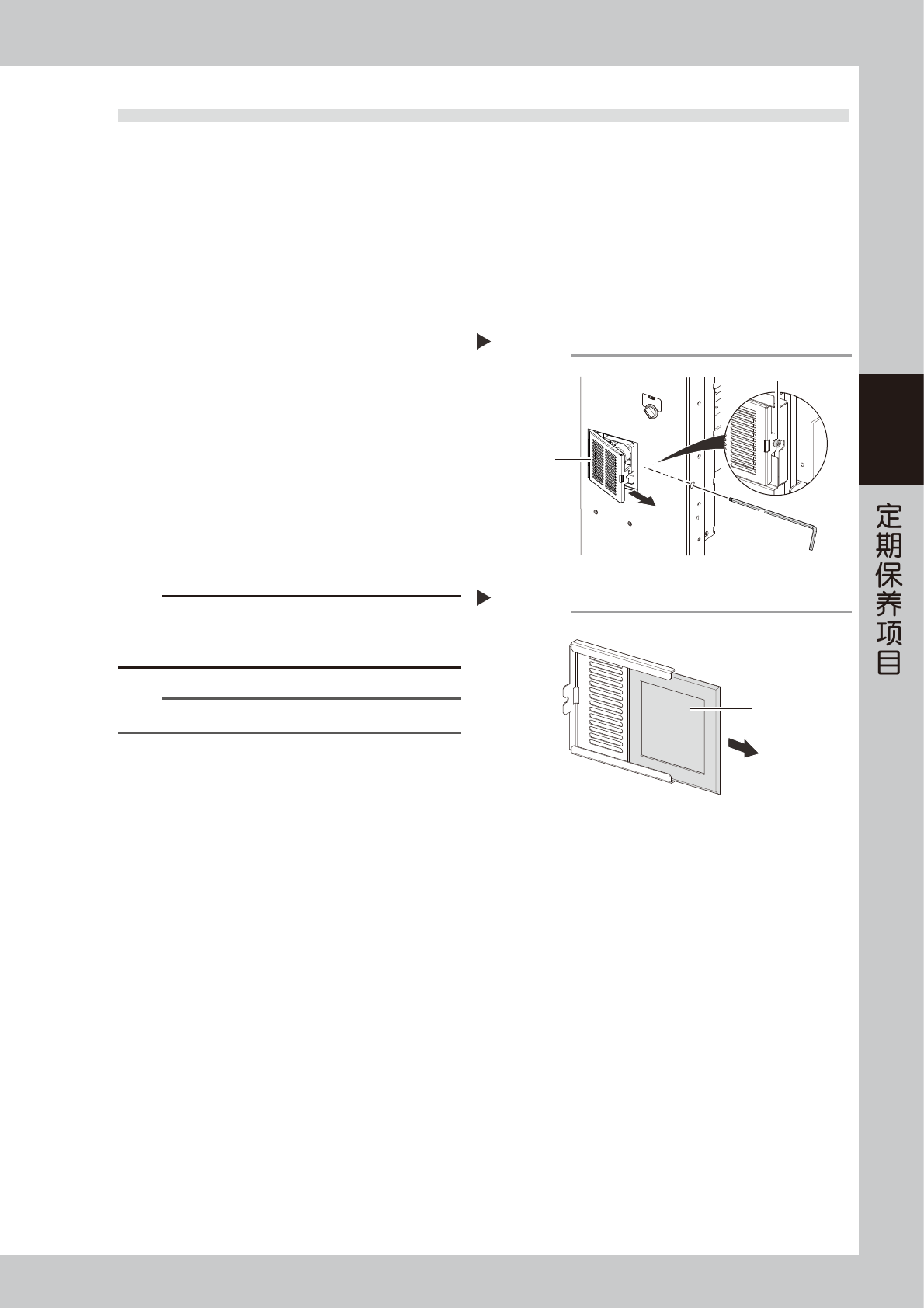 2. 将过滤网盖板沿箭头方向取出。
