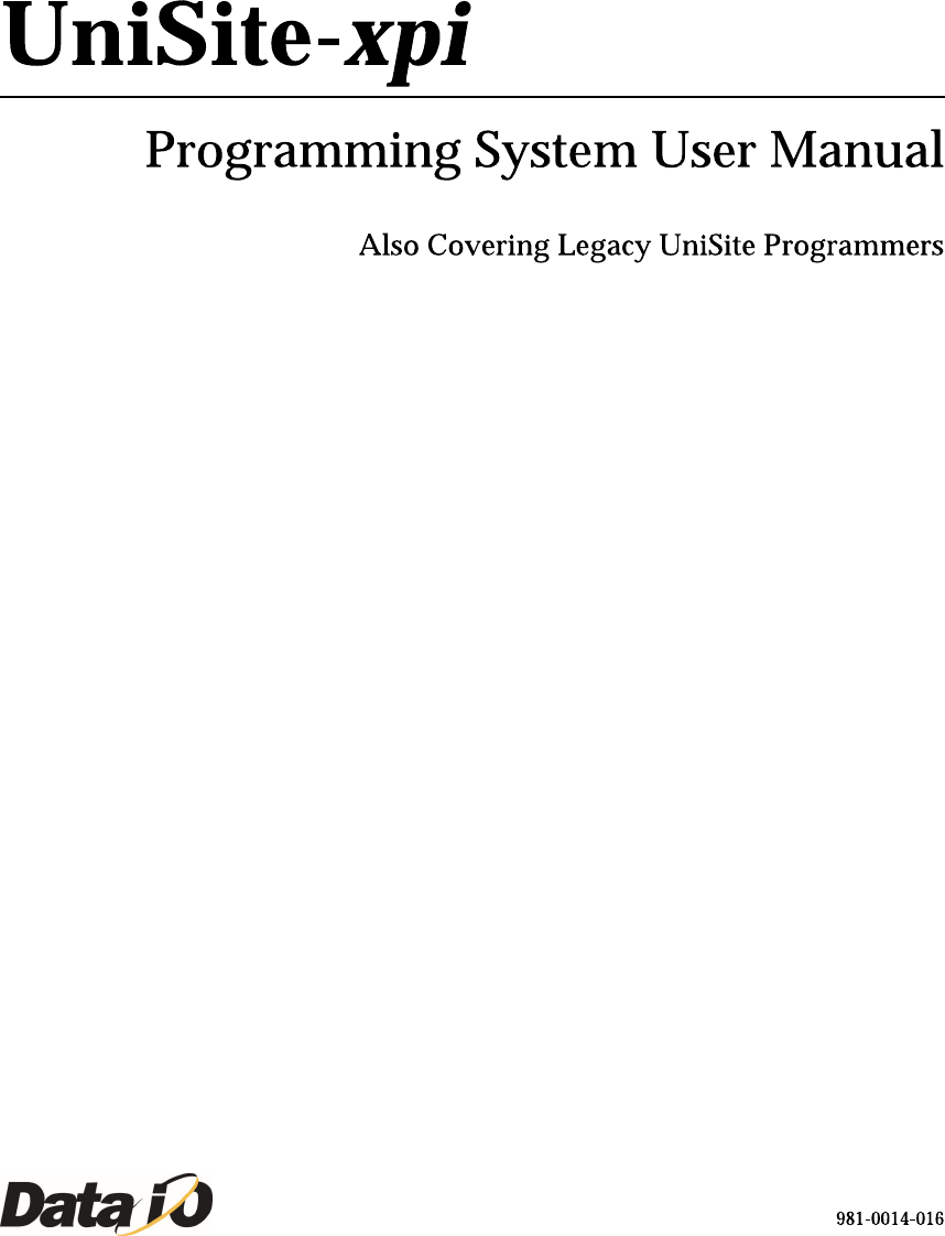 981-0014 UniS it e Programming System User Manual Also Covering Legacy UniSite Programmers