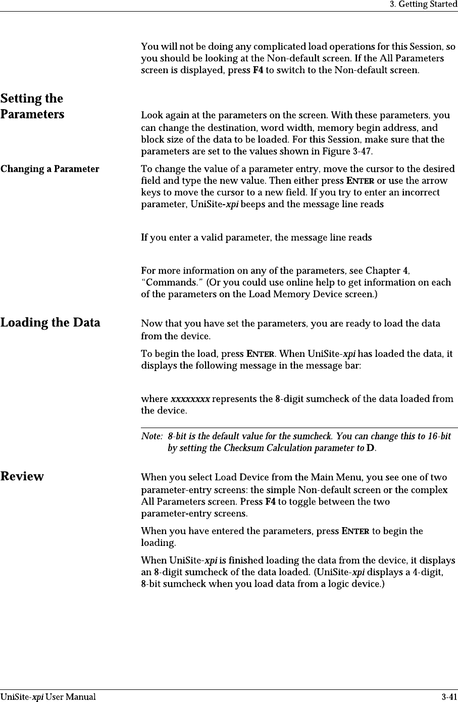 Illegal parameter value Paramete r Entered OPERATIO N COMPLETE: Sumcheck = xxxxxxxx