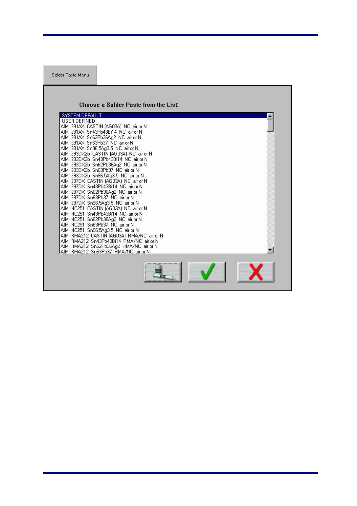 锡膏菜单 – 当你点击了锡膏清单后,就会弹出一个可从中选用不同锡膏的清单。使用右边的滑动条寻找