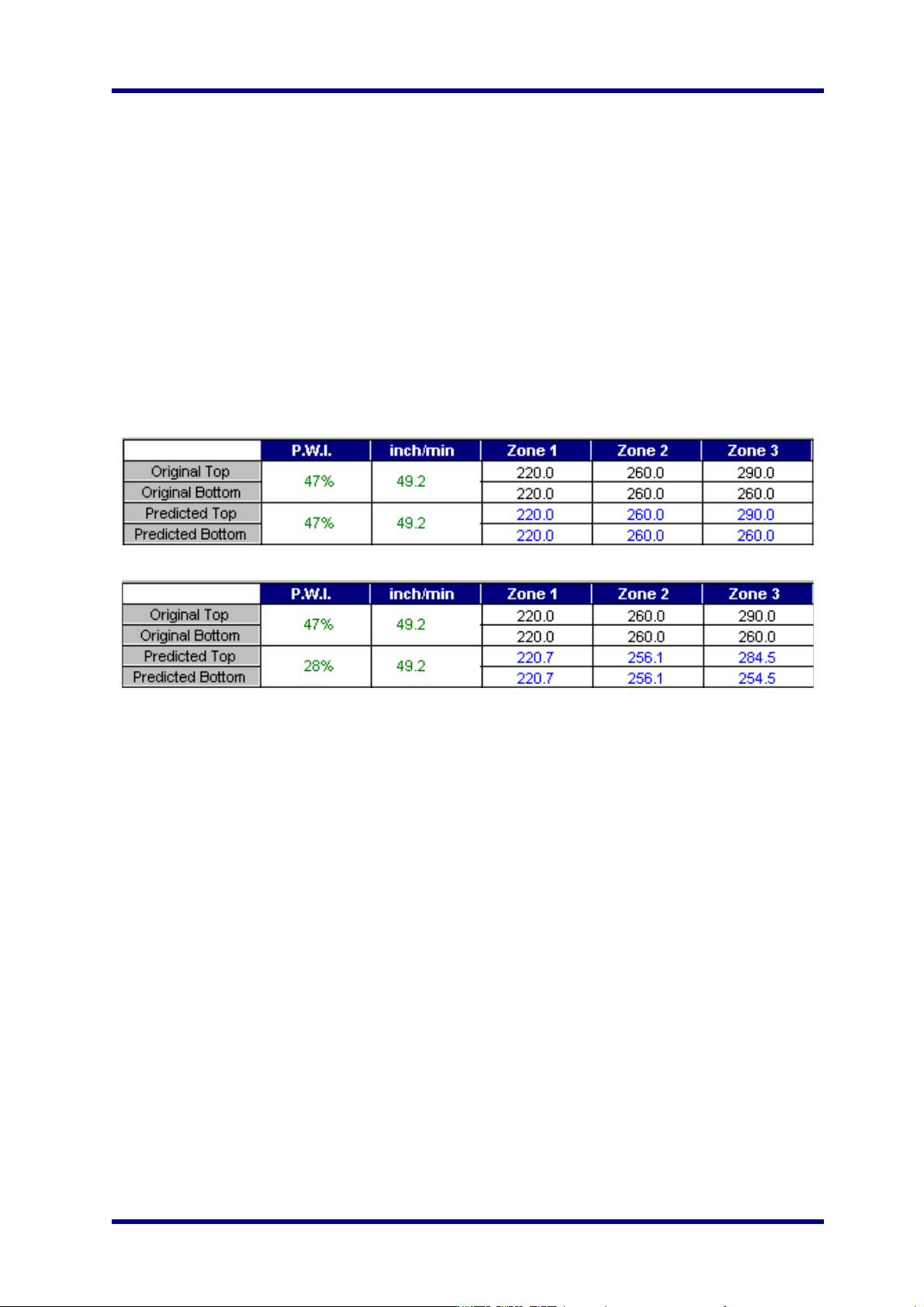 原始区域(上面部分),和预测区域(下面部分)。原始参数值是在按照炉子参数设置实际测量曲线时得到