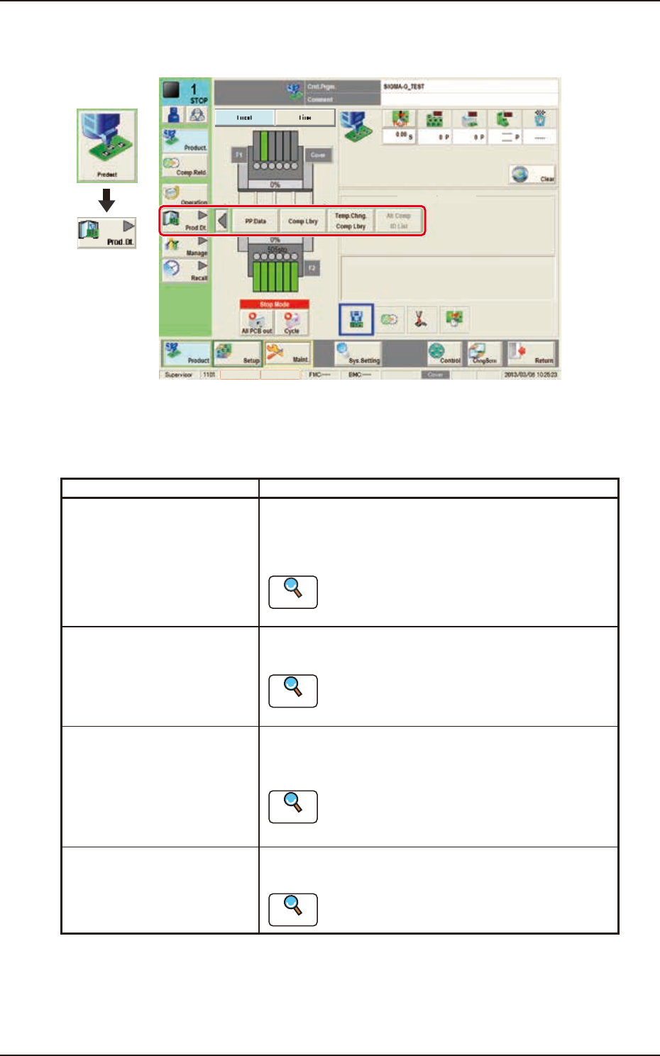The "Prod.Dt." submenu is provided with the following three menu items. When each button is