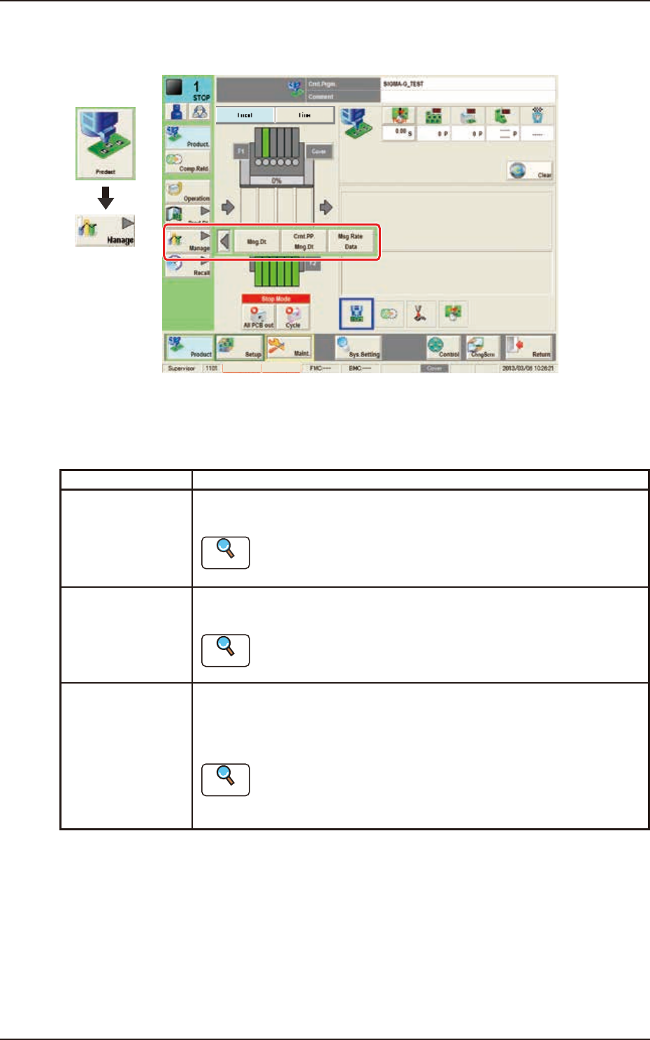 Crnt.PP.Mng.Dt When pressed, the "Crnt.PP.Mng.Dt" window is displayed and operated for