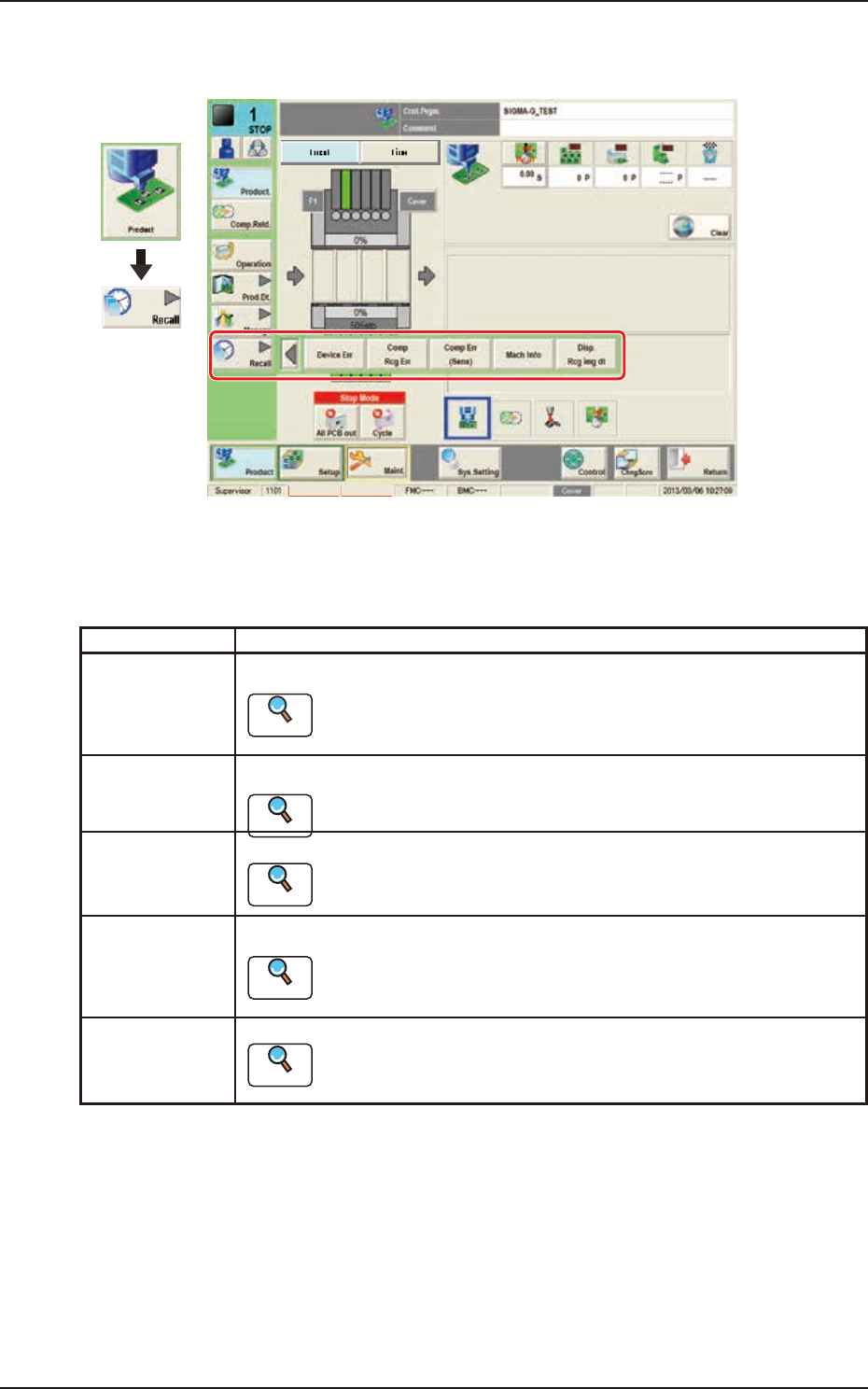 Comp Rcg Err When pressed, the component recognition error history is displayed.